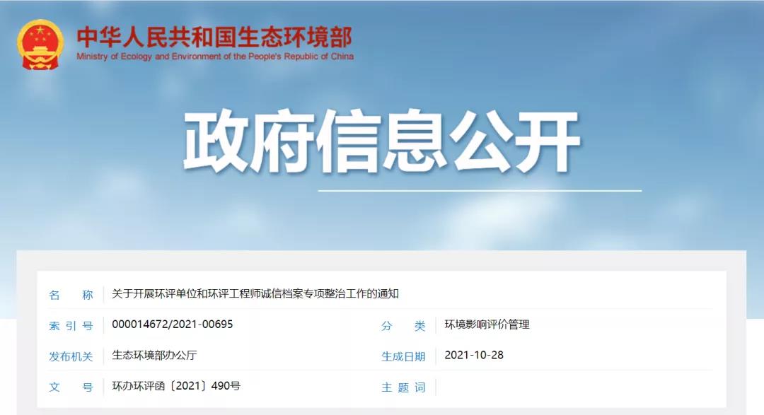 环境部发文开展环评单位和环评工程师诚信档案专项整治,将逐一核实社保